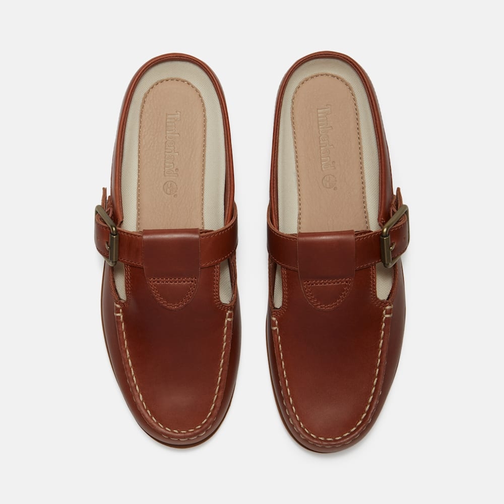 여성 클래식 보트슈즈 뮬은 여름철 편안하게 착용할 수 있는 슈즈입니다. 프리미엄 팀버랜드® 가죽과 재생 PET 플라스틱을 50% 이상 함유한 ReBOTL™ 소재 안감이 적용되어 편안한 착용감을 선사합니다. 조절 가능한 버클이 달린 어퍼와 쿠션감을 제공하는 EVA 미드솔이 적용되어 탈착이 자유로우며, 여름철에 가볍고 편안한 스타일을 연출합니다.
