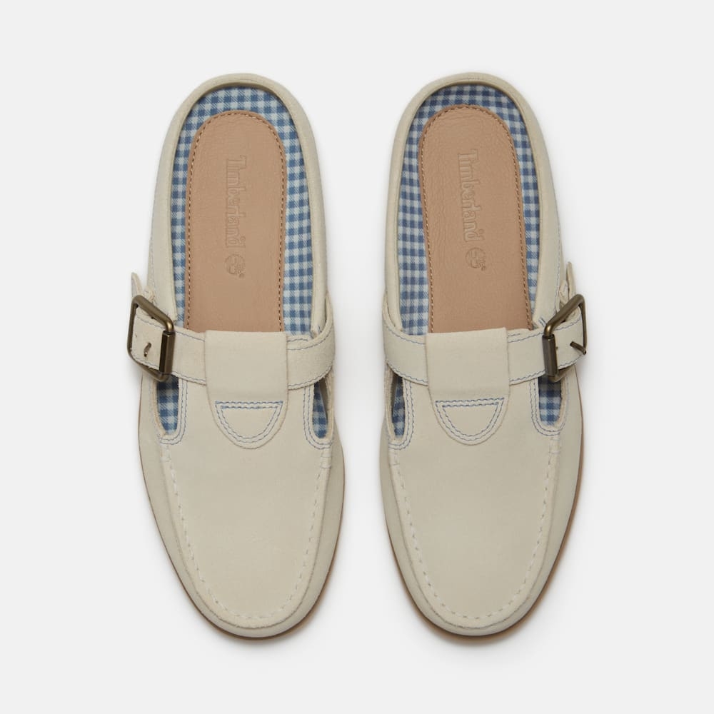 여성 클래식 보트슈즈 뮬은 여름철 편안하게 착용할 수 있는 슈즈입니다. 프리미엄 팀버랜드® 가죽과 재생 PET 플라스틱을 50% 이상 함유한 ReBOTL™ 소재 안감이 적용되어 편안한 착용감을 선사합니다. 조절 가능한 버클이 달린 어퍼와 쿠션감을 제공하는 EVA 미드솔이 적용되어 탈착이 자유로우며, 여름철에 가볍고 편안한 스타일을 연출합니다.