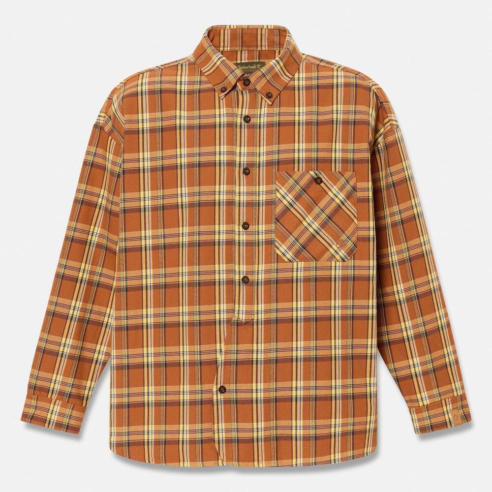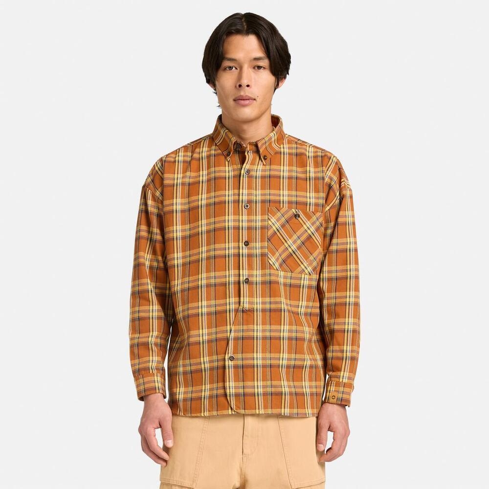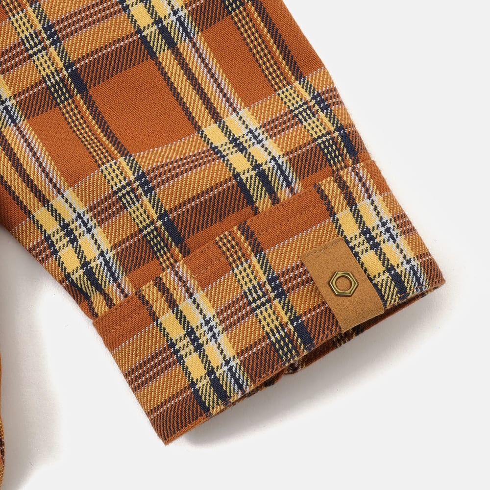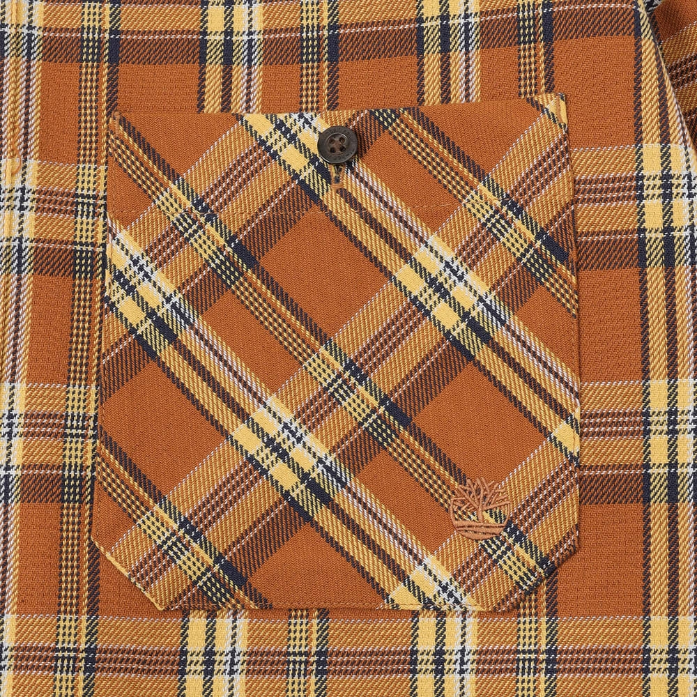 ・우븐 ・35% 면, 65% 폴리에스터 ・142 g/m2 (5OZ) ・가먼트 워싱 ・버튼 오프닝 ・드롭 숄더 ・버튼다운 ・TBL 트리 로고 자수 ・PU 가죽 트리 로고 브랜딩 ・Timberland X TDC 시그니처 메탈 육각형 아일렛 탭